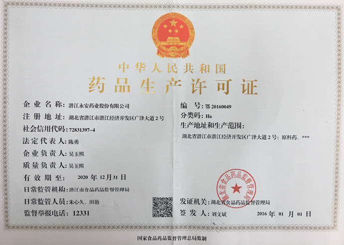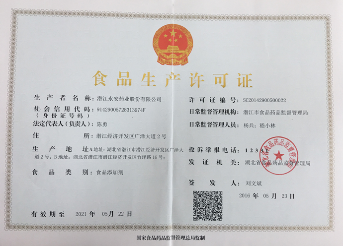 潛江永安藥業(yè)股份有限公司成立于2001年,坐落于江漢平原腹地潛江市國家高新技術(shù)產(chǎn)業(yè)開發(fā)區(qū),占地500余畝,注冊資金貳億玖仟肆佰陸拾捌萬貳仟伍佰元整,是一家擁有自主知識產(chǎn)權(quán)的國家高新技術(shù)企業(yè)。公司股票于2010年3 月5日在深圳證券交易所掛牌上市(股票代碼為002365)。公司具有雄厚的技術(shù)開發(fā)能力,是湖北省創(chuàng)新型企業(yè)和湖北省知識產(chǎn)權(quán)建設示范企業(yè)。公司研發(fā)平臺分別被認定為省級企業(yè)技術(shù)中心和湖北省功能性食品添加劑工程技術(shù)研究中心。 經(jīng)過多年的發(fā)展,公司形成了以食品及藥品添加劑?;?/p>
